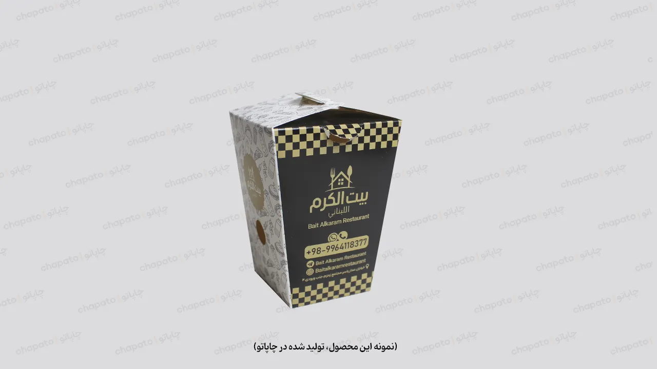 • سعی کنید از اسم رستوران یا کافه، لوگو یا رنگ سازمانی مجموعه روی چاپ جعبه استفاده کنید.