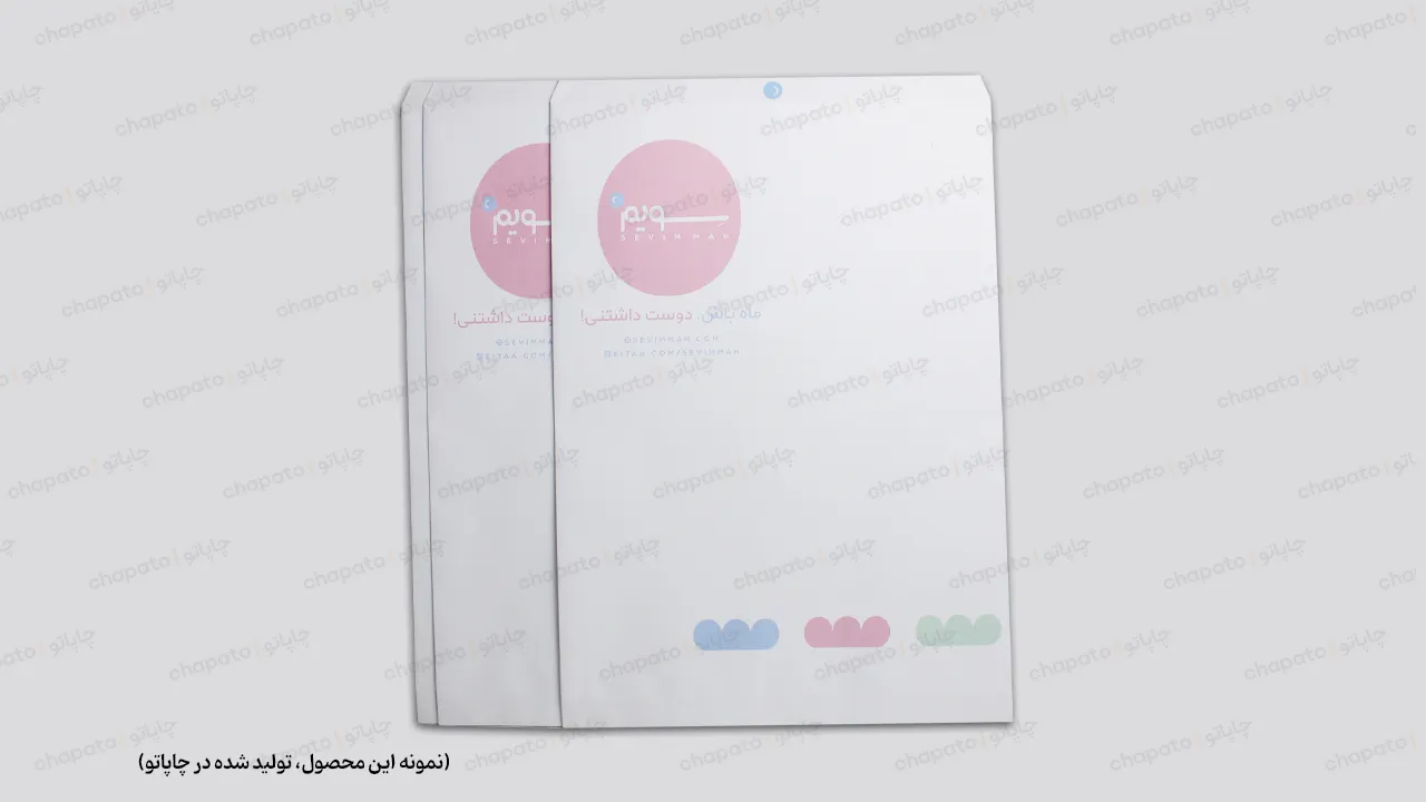 برای طراحی پاکت سعی کنید به مینیمال‌ترین شکل ممکن پاکت خود را طراحی کنید. استفاده از رنگ سازمانی برند در پاکت، تاثیر زیادی در اعتبار مجموعه شما دارد. در صورتی که برای انتخاب بهترین رنگ سازمانی نیاز به کمک دارید، تیم طراحی چاپاتو طرح را مطابق هویت بصری گرافیکی مجموعه شما، آماده خواهد کرد.